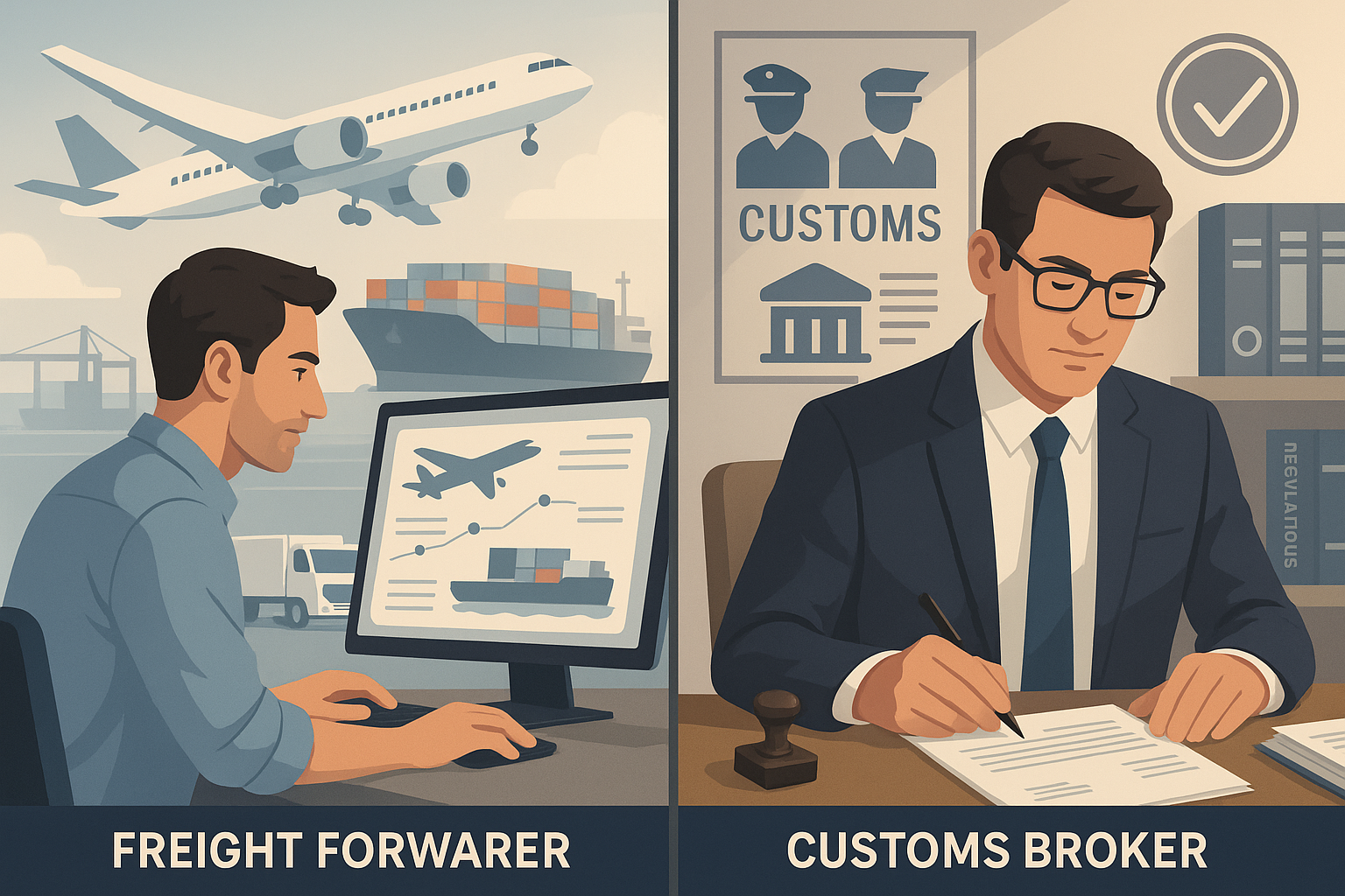 Both entities are critical — one moves the cargo; the other gets it through customs legally and efficiently.